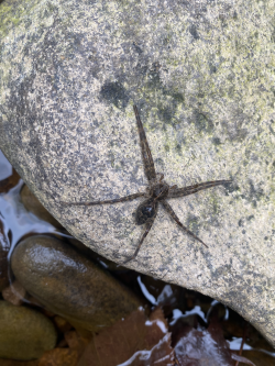 Fishing spiders in the genus Dolomedes found in and around streams hunt for small fish and other prey.